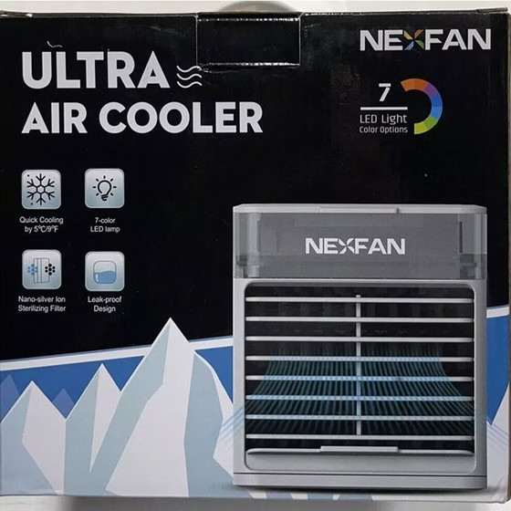 کولر آبی مینی نکسفن مدل nexfan-01 یک کولر قابل حمل با خروجی باد محدود با کاهش دمای متوسط (حدود 4 درجه خنک تر از محیط) است که با پاوربانک های معمول و یا کابل USB، قابل استفاده است. مکانیسم خنک کنندگی تبخیری بوده و از یک فن کم مصرف و برگه های سلولوزی بهره می برد که از این نظر عملکردی مشابه با کولرهای سلولزی معمول اما در ابعادی کوچک و قابل حمل دارد. تنظیمات دستگاه شامل تنظیم شدت باد در 3 درجه و رنگ قابل انتخاب برای نور ملایم دستگاه است. گنجایش مخزن آب حدود 700 میلی لیتر است. میزان صدای دستگاه هنگام خواب آزاردهنده نیست. دستگاه قدرت چرخش باد و پخش ندارد و صرفاً بصورت مستقیم پرتاب باد دارد و از این نظر برای استفاده روی میز کار، چادرهای کوچک و فضاهای محدود مناسب است؛ همچنین در پاییز و زمستان با خشک شدن هوا، می توان برای مرطوب یا خنک نگه داشتن محیط گیاهان خانگی حساس از آن استفاده کرد. اگر کلا قصد استفاده از قابلیت خنک کنندگی ندارید، می توان در مخزن آن اکالیپتوس و مواد معطر ریخته تا فضا را خوشبو کند.
