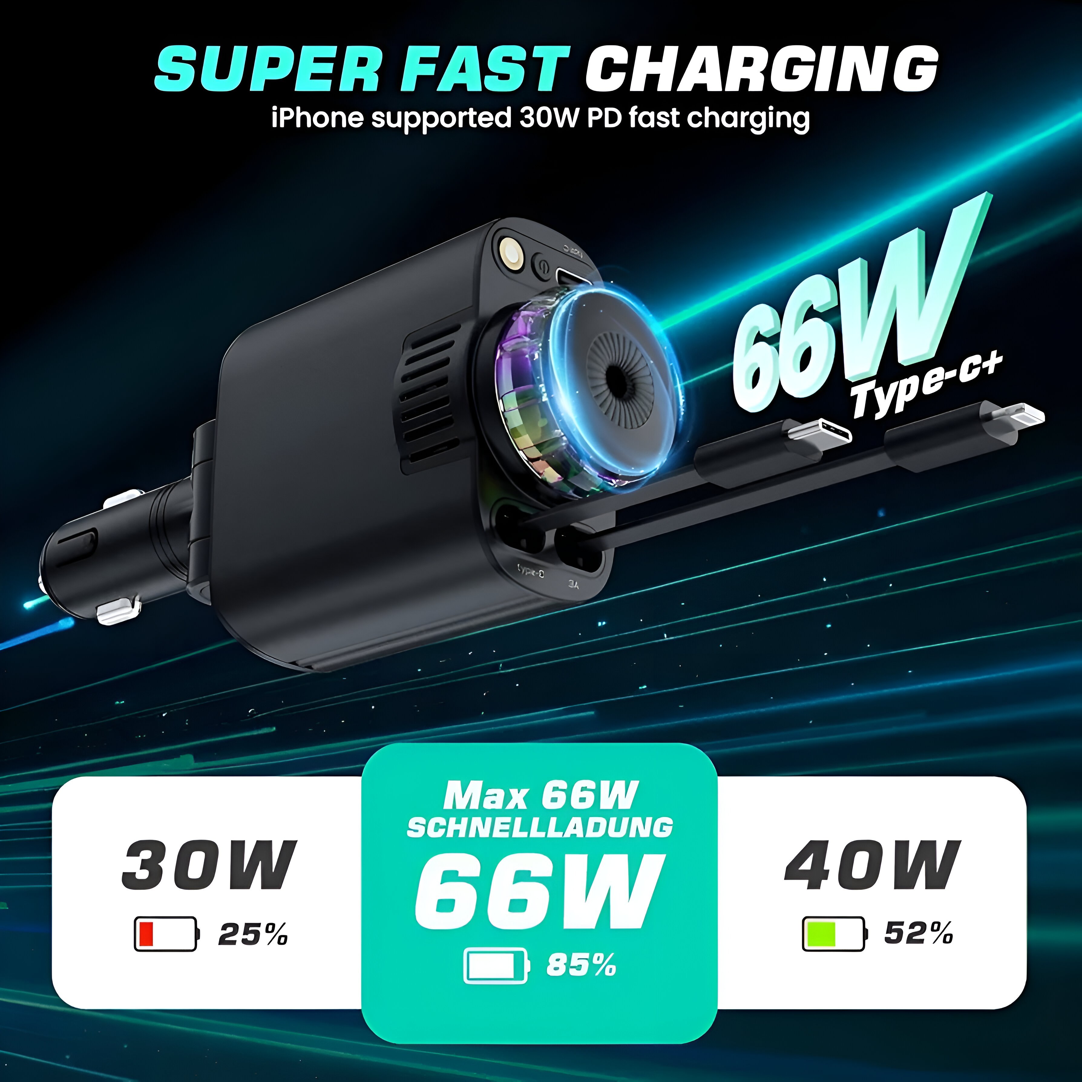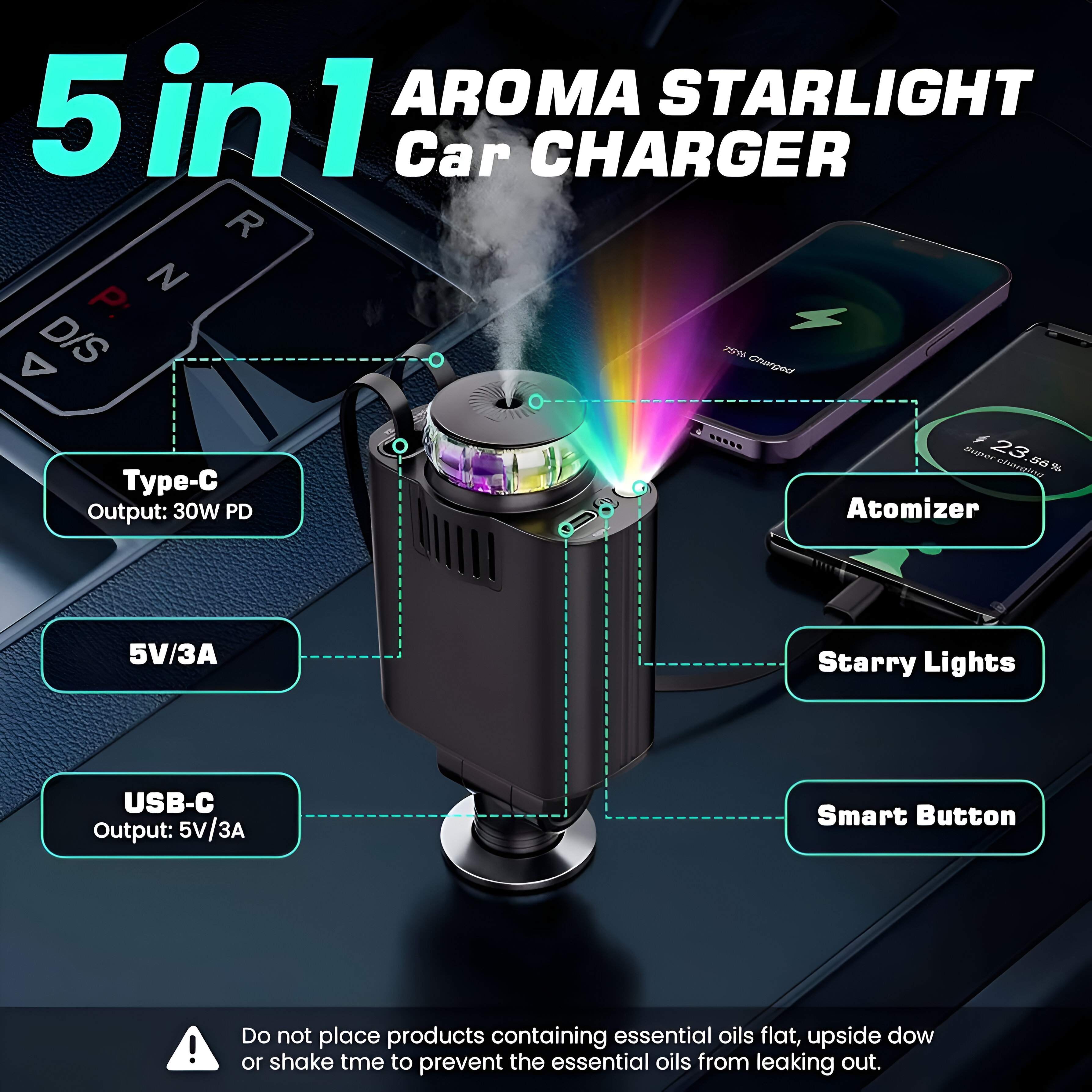 شارژر فندکی Starlight Car Charger 5in1 یک محصول چندمنظوره و کاربردی برای خودرو است که علاوه بر شارژ سریع و ایمن دستگاههای شما، امکانات بیشتری را هم در اختیارتان میگذارد. این دستگاه مجهز به پورت Type-C و USB با قابلیت شارژ سریع (PD 3.0 ) است و میتواند همزمان چند دستگاه را با سرعت بالا شارژ کند. از ویژگیهای خاص این شارژر میتوان به انتشار عطر خوشبوکننده، نورپردازی LED سقف کهکشانی و طراحی مدرن اشاره کرد که علاوه بر کاربردی بودن، جلوه زیبایی به داخل خودرو میدهد. با این محصول، شما در واقع ۵ وسیله را در قالب یک دستگاه در اختیار خواهید داشت .